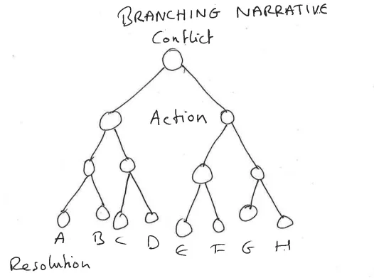 Games follow different narrative structures which are similar to those used in film but because they are interactive and immersive with the player at the centre of the story, need to allow for a structure that is non-linear. Games can follow a linear structure in that it progresses from beginning to end but to develop choice within the game you might want to think about an alternative structure.