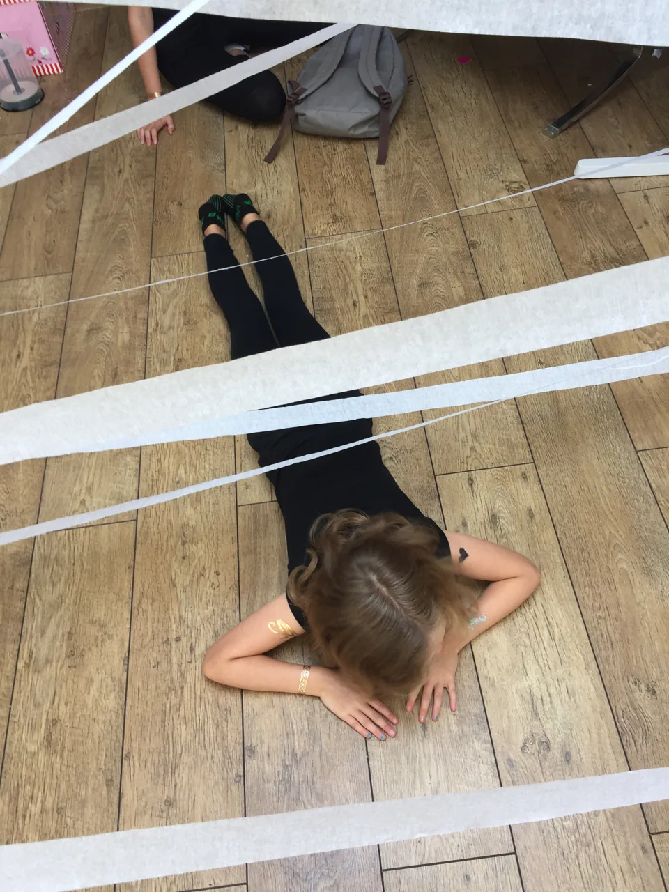 A simple game but always so much fun, trying to climb through the laser beams (paper streamers!) without touching them.