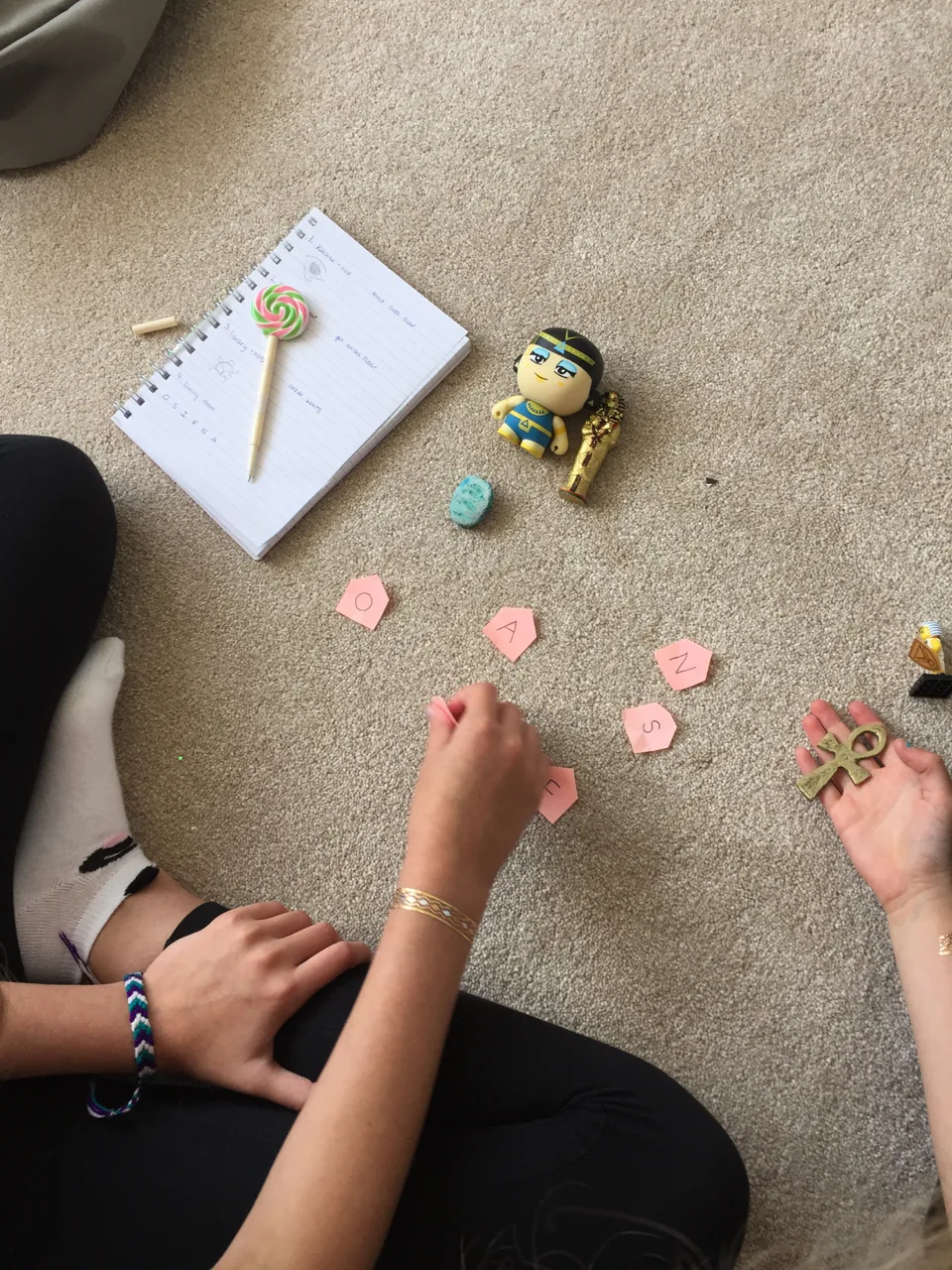 This challenge was a traditional treasure hunt with a twist, there were several egyptian objects hidden in the room and each held a letter which would spell out the location of the coin. But to make it extra tricky, the children weren’t told how many objects there were to find.