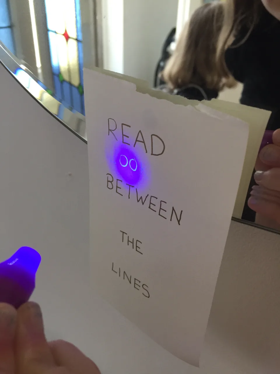 The old invisible ink trick, the children had to uncover the real message to find the coin.